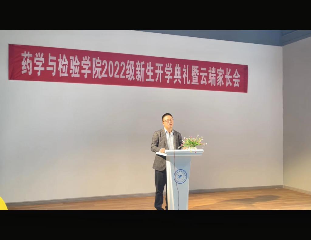 2022年9月17日上午九时三十分,太阳集团122cc在经开区校区食品药品生产性实训基地二楼创客中心举行2022级新生开学典礼暨云端家长会。药检公司班子成员、新生辅导员、2022级664名新生同学及1000多名家长通过腾讯会议直播功能全程参加。