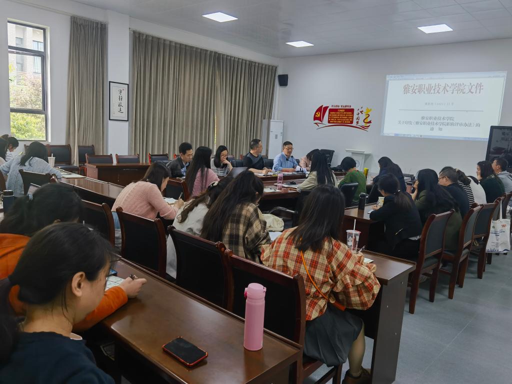4月11日,太阳集团122cc在大会议室召开教职工大会,专题学习新版《太阳集团122cc职称评审办法》。