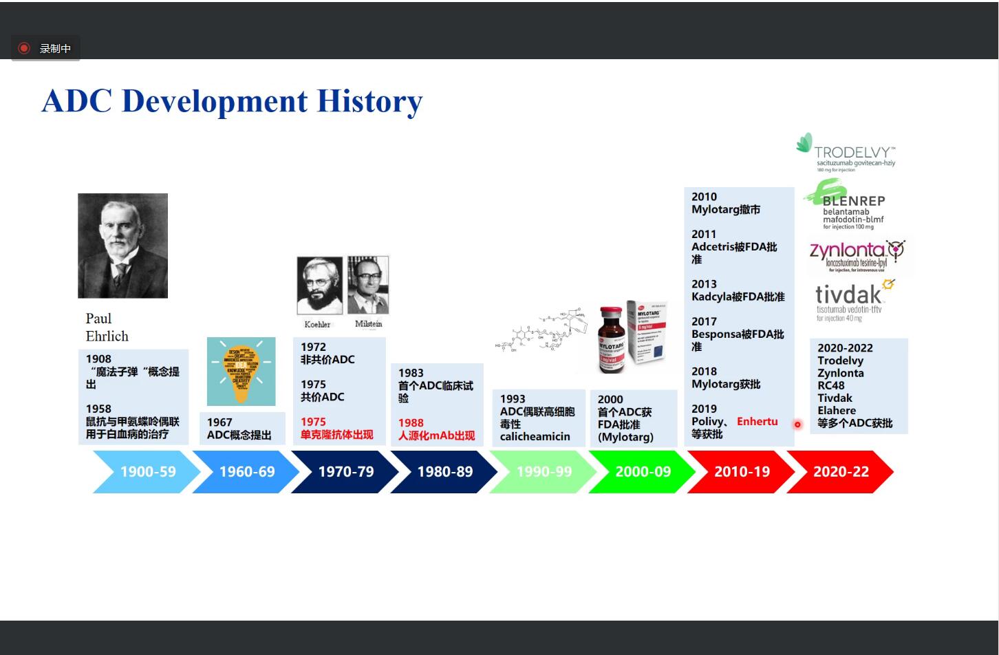 抗体作为治疗药物的研究和临床应用由来已久,而随着抗体技术在过去几十年中的逐步提升,抗体偶联药物也进入了快速发展期,抗体偶联药物 (Antibody Drug Conjugates,ADC)是一类融合了抗体与小分子细胞毒素两种组分的新兴药物,在肿瘤治疗以其他领域如免疫、抗感染等都具有非常广阔的应用前景,市场规模已达200余亿美金。唐宇博博士从抗体药物偶联物(ADCs)背景介绍、ADCs技术发展与定点偶联技术两方面详细介绍了抗体药物偶联物的研发进展及产业化现状,重点讲解了定点偶联技术的开发,工艺稳定性等内容,并列举了抗体偶联药物产业发展的利好趋势,进行了典型案例分析,更深入、更客观的带大家了解医药产业的最新发展。
