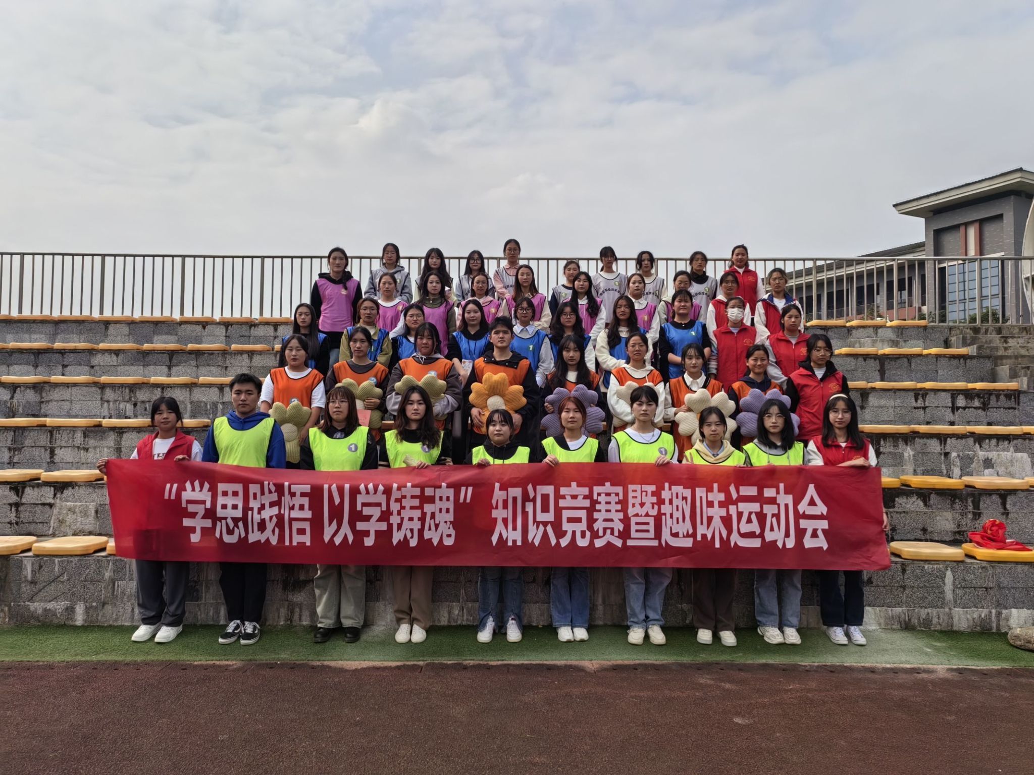 为了深入学习贯彻习近平新时代中国特色社会主义思想,以生动有趣的方式激发青年员工对习近平新时代中国特色社会主义思想和二十大报告的学习兴趣,进一步增强员工党支部和团委的政治引领作用,增强员工入党积极分子的教育成效,2023年11月7日,51名员工入党积极分子及共青团员员工干部在经开校区操场开展“学思践悟 以学铸魂”知识竞赛暨趣味运动会。活动由共青团太阳集团122cc团委与太阳集团122cc第二党支部联办,太阳集团122cc第三党支部员工党建工作站、太阳集团122cc团总支承办。员工党建工作站副站长胡贵娟同学担任主持人,工作站其他员工工作人员及团总支部分员工干部负责维持现场秩序。