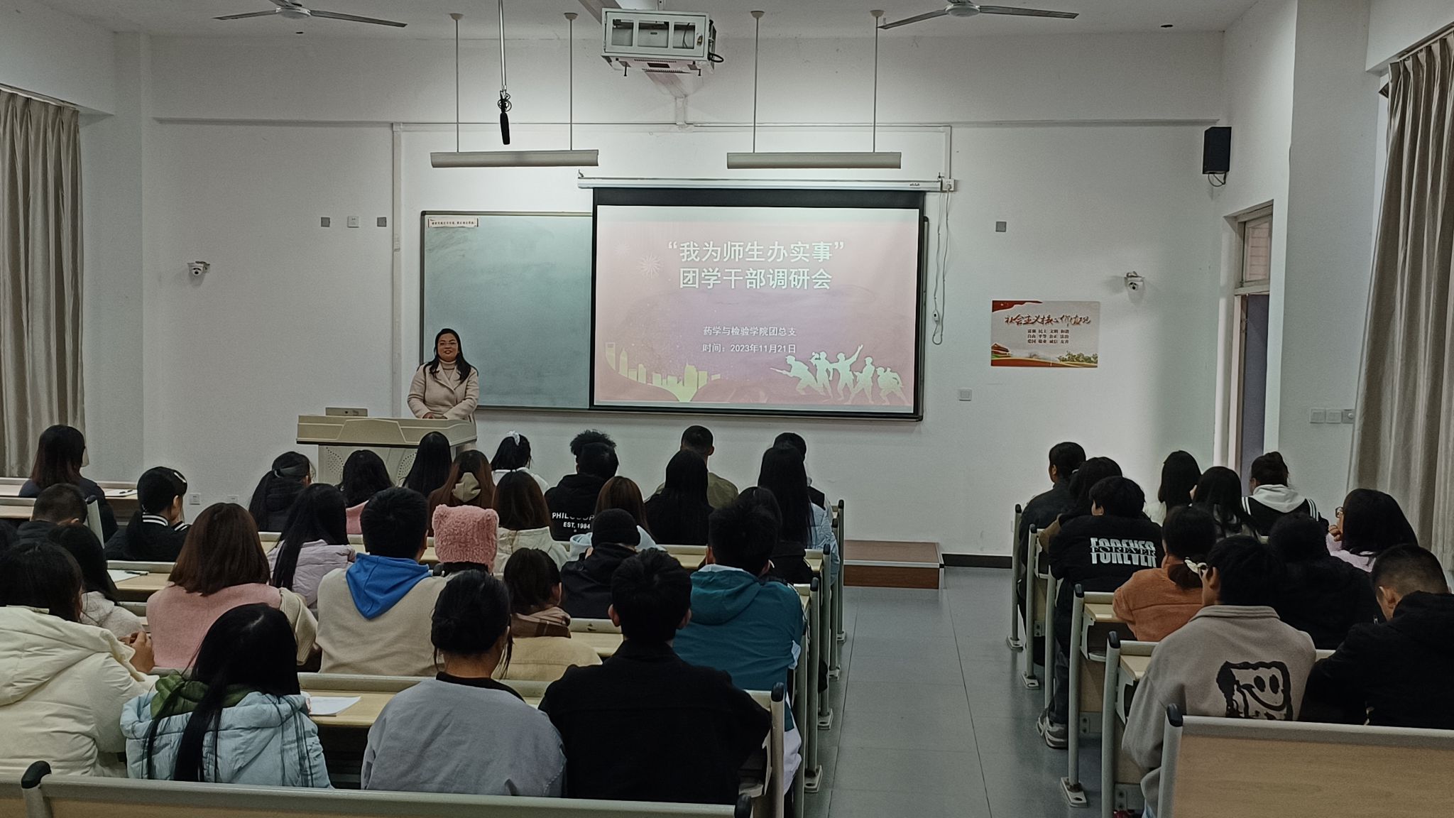 为提升团学干部的工作能力和服务水平,了解同学们在生活和就业方面的问题并针对具体问题做出解答,药学与检验公司党总支第二党支部、团总支于11月21日举办了“我为师生干实事”团学干部调研会。此次调研旨在加强团学干部的实践能力,并鼓励他们在服务教师和同学的过程中发挥主动性和创造性,深入了解其中问题,并通过具体行动进行解决。