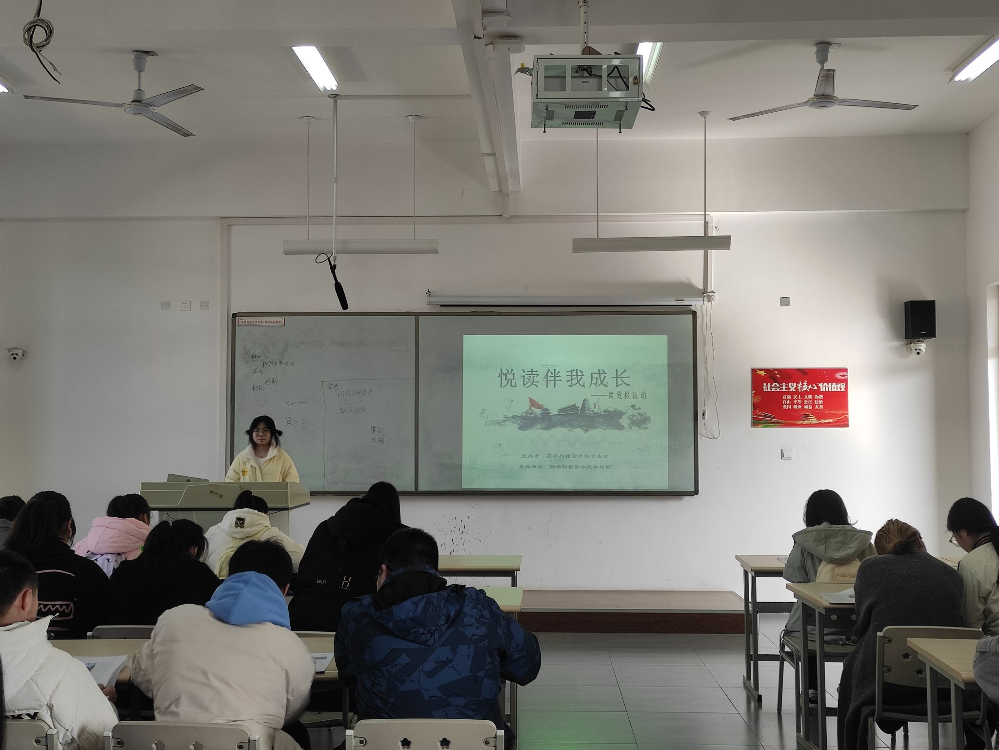 本次活动由学习部干事夏丽佳主持。活动开始,主持人带大家回望党史,分享了优秀党员的先进事迹;接着,同学们开始阅读党报,以阅读的方式切身感受党的伟大成就;阅读完毕后,主持人组织了击鼓传花等趣味小游戏,在游戏的欢声笑语中,同学们上台分享阅读感悟,在方寸之间体味书香墨韵。至此,活动圆满结束。