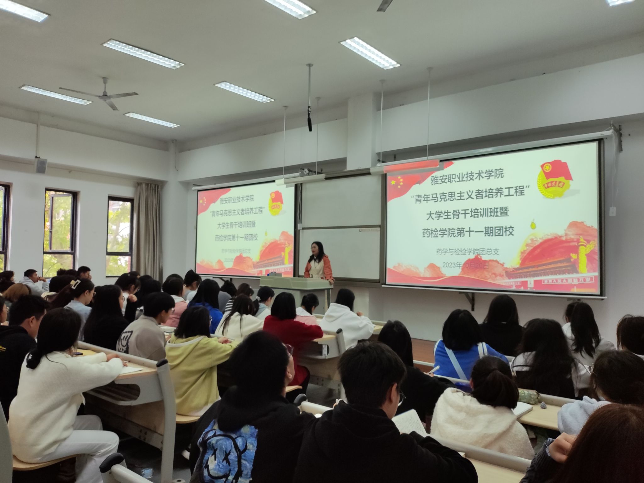 太阳集团122cc团总支于2023年10月20日在经开校区1204教室开展了第十一期团课第四次课程,团总支书记鲜敏老师讲述了青年马克思主义者培养工程。
