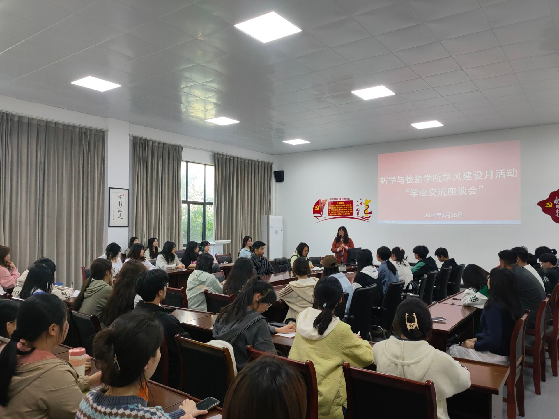 为加强公司学风建设,提升员工的学习热情和学习效率,药学与检验公司党总支第二党支部于2024年3月25日在食品药品生产实训楼205会议室召开了本学期学风建设月“学业交流座谈会”专题活动。座谈会由党总支副书记罗小莉主持,50余名同学参加。
