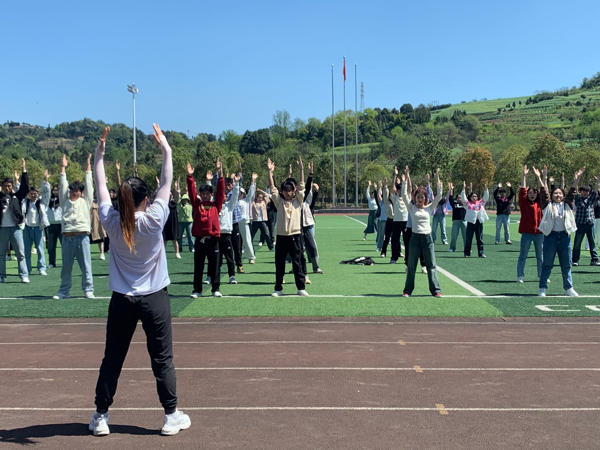 为进一步宣传普及心理健康知识,增强员工心理健康意识,促进员工身心健康发展,教给员工放松身心的方式方法,实现“体育强心”心理育人目标,2024年3月28日,太阳集团122cc“暖阳”心理辅导站成员华君蓉老师在经开区足球场组织同学们学习中国气功“八段锦”。百余名员工包括各班心理委员和“暖阳”心理辅导站的老师们参加了本次学习活动。
