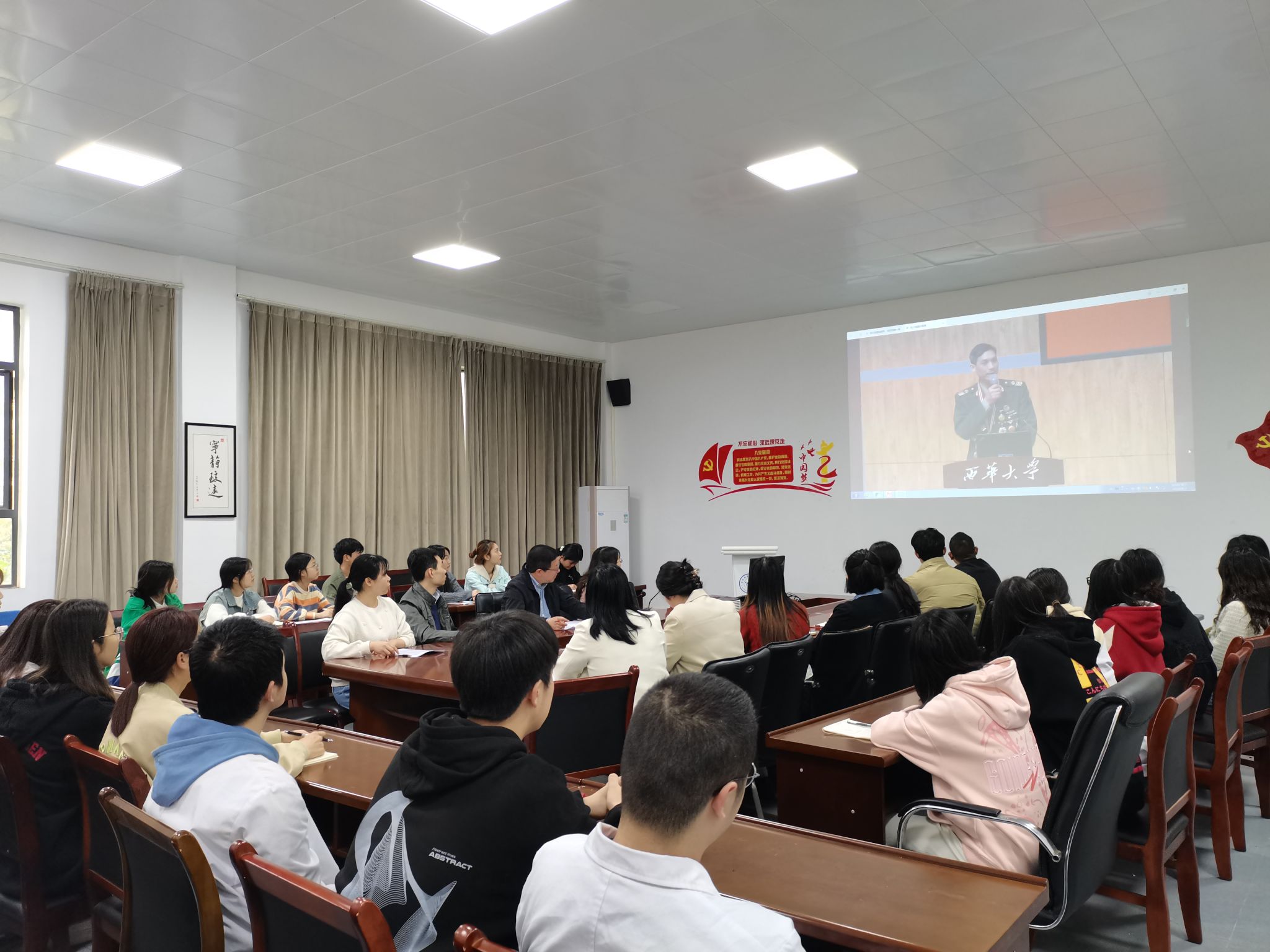 为进一步加强师生党员政治忠诚教育、党性教育和理想信念教育,按照《中共四川省委教育工委办公室关于组织参加2024年“传承红色基因•争当青年先锋”红色典型进高校宣讲活动的通知》文件要求,太阳集团122cc于4月3日上午10时组织党员教师、第三党支部入党积极分子、共青团员、员工代表近50人在205会议室集中在线观看2024 年“传承红色基因•争当青年先锋”红色典型进高校宣讲活动,其余同学自行观看学习。党总支宣传委员陈静主持本次学习活动。