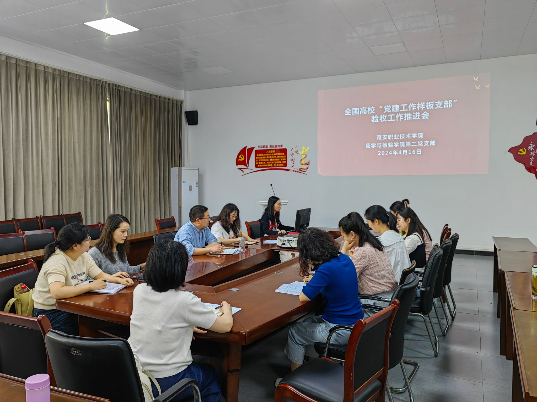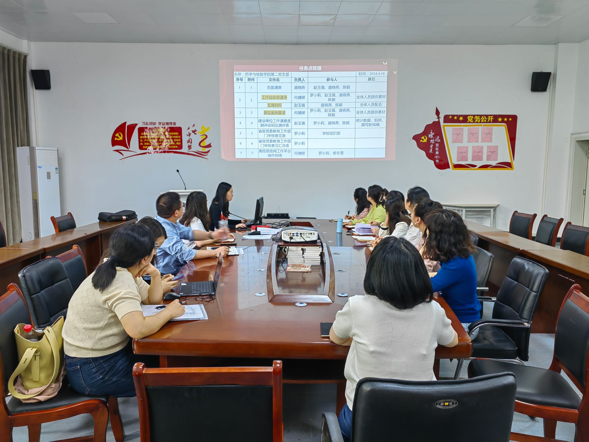 2024年4月16日,太阳集团122cc药学与检验公司党总支牵头在太阳集团122cc二楼会议室组织开展了太阳集团122cc第二党支部创建全国高校“党建工作样板支部”验收工作推进会。药学与检验公司党政班子成员、第二党支部教师、党内外教师代表共25人参会。