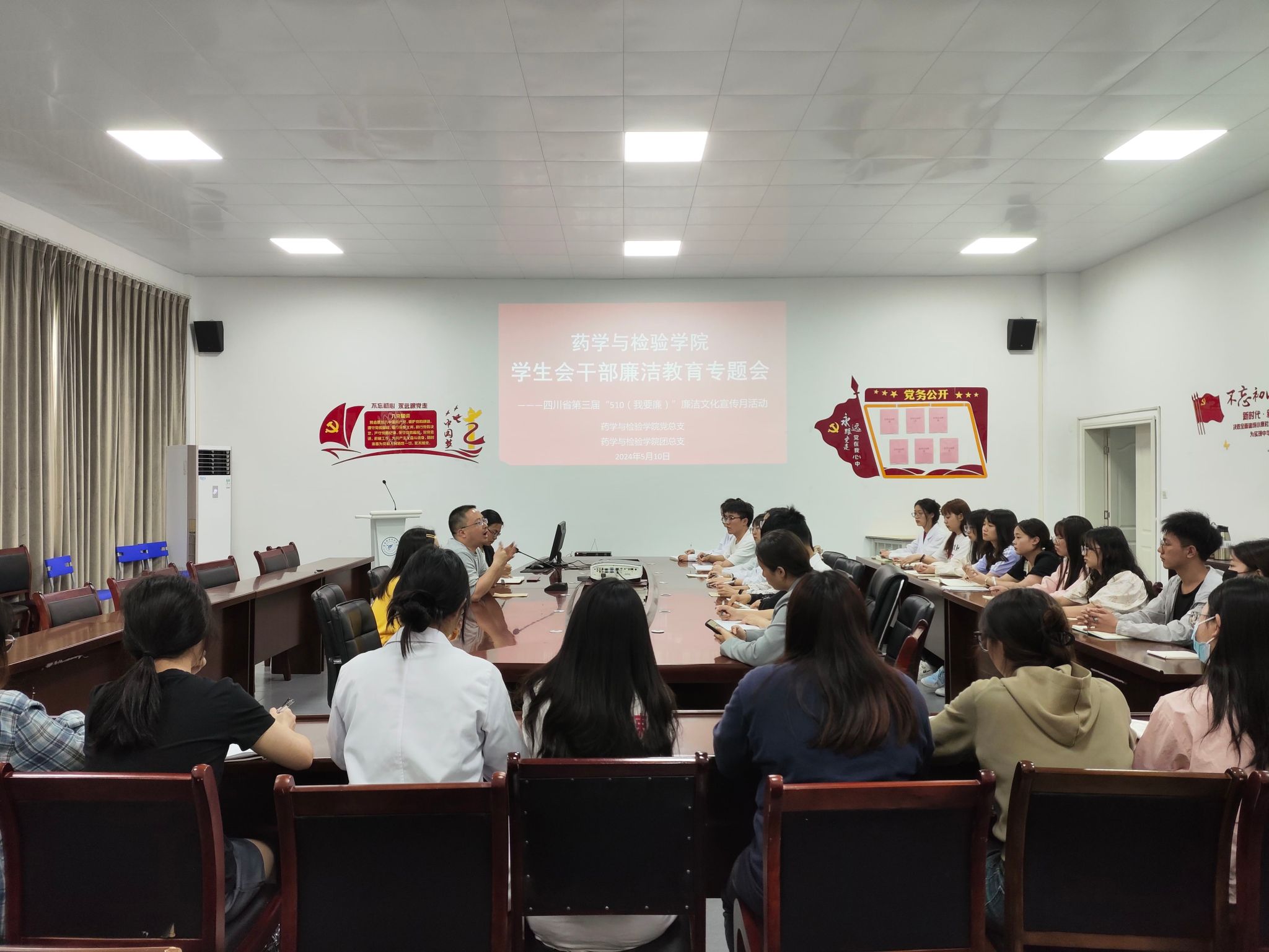 为提高员工会干部的廉洁意识和工作效率,太阳集团122cc于5月10日在食品药品生产实训基地205会议室开展员工会干部五月工作例会暨廉洁教育专题会,公司党总支书记王伟才、团总支书记鲜敏、团总支副书记宋杨胤主讲,27名员工干部参会学习。