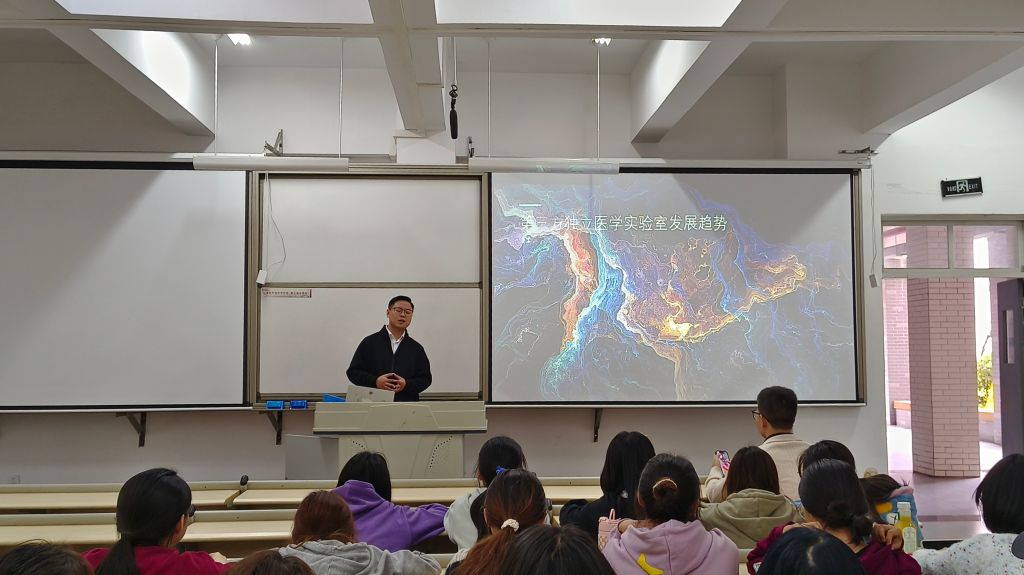 本次活动为同学们带来了关于第三方独立医学实验室发展趋势的精彩讲座。讲座现场气氛热烈,座无虚席。业务部总监杨霄以其深厚的专业素养和丰富的行业经验,为同学们徐徐展开了第三方独立医学实验室的发展画卷。首先深入剖析了当前医疗行业大背景下,第三方独立医学实验室的重要地位和作用。强调其在提高医疗资源利用效率、提升检验质量、推动医学检验技术创新等方面发挥着不可替代的关键作用。通过具体的数据和实例,展示了近年来第三方独立医学实验室的快速发展态势,让同学们深刻感受到这一领域的巨大潜力。接着,杨总监详细阐述了第三方独立医学实验室的未来发展趋势。指出随着科技的不断进步,如人工智能、大数据、基因检测等前沿技术将越来越广泛地应用于医学检验领域。实验室将更加注重智能化、精准化、高效化发展,为临床诊断和治疗提供更加准确、及时的检验结果。同时,杨总监也提到了行业对专业人才的迫切需求,鼓励同学们努力学习专业知识,提升实践技能,为未来投身这一充满机遇的领域做好充分准备。
