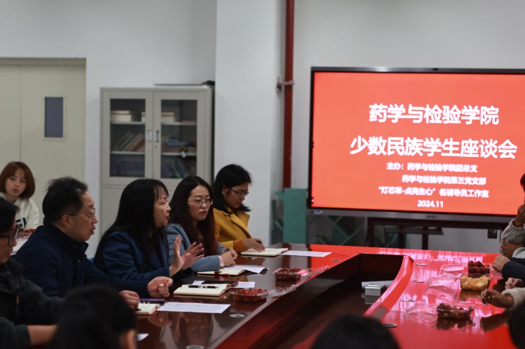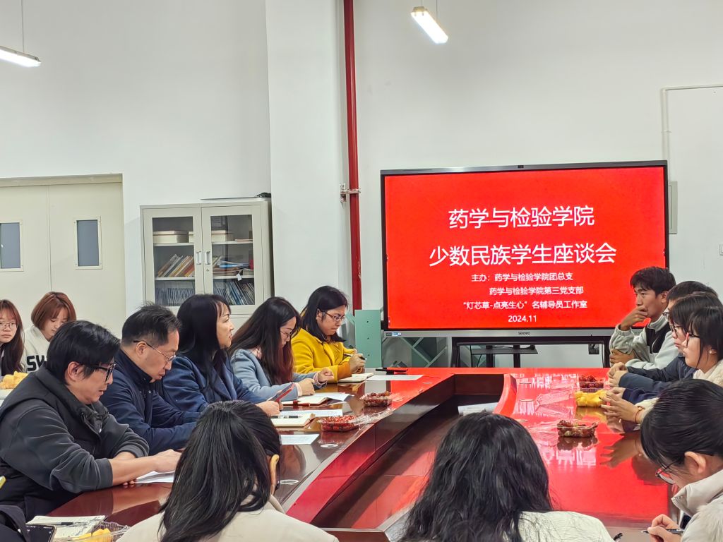 为深入贯彻习近平总书记关于民族团结的重要论述,促进各民族员工之间的交流合作。太阳集团122cc于11月21日在食品药品生产实训楼203会议室召开“共话民族情,砥砺共奋进”少数民族员工座谈会。太阳集团122cc常委委员、副董事长付洪涛,员工处处长徐维,药学与检验公司党总支书记杨泽刚、副书记罗小莉、全体辅导员班主任及来自藏族、彝族、回族、布衣族等少数民族员工代表共54人参加。