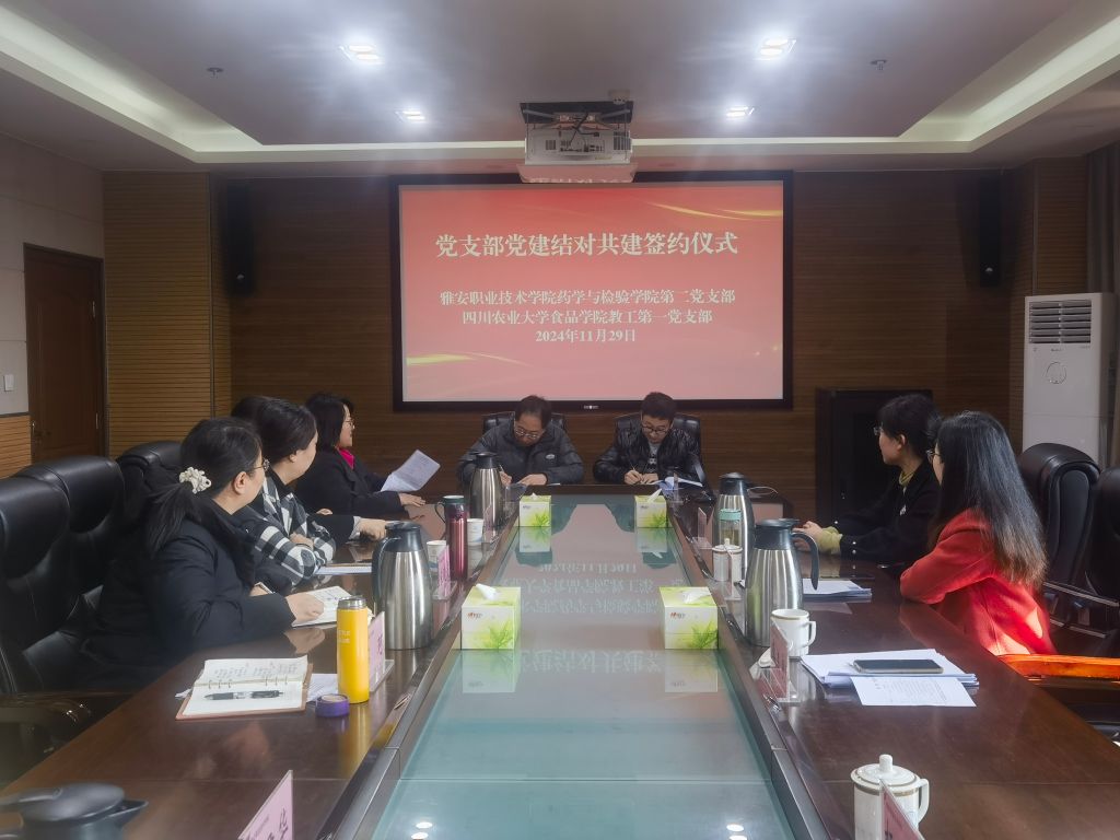 2024年11月29日,为进一步推动基层党建工作,加强党组织之间的交流与合作,太阳集团122cc药学与检验公司党总支第二党支部与四川农业大学食品公司教工第一党支部开展了党支部党建结对共建签约活动。此次活动旨在通过资源共享、优势互补,共同推动党建工作取得新成效。