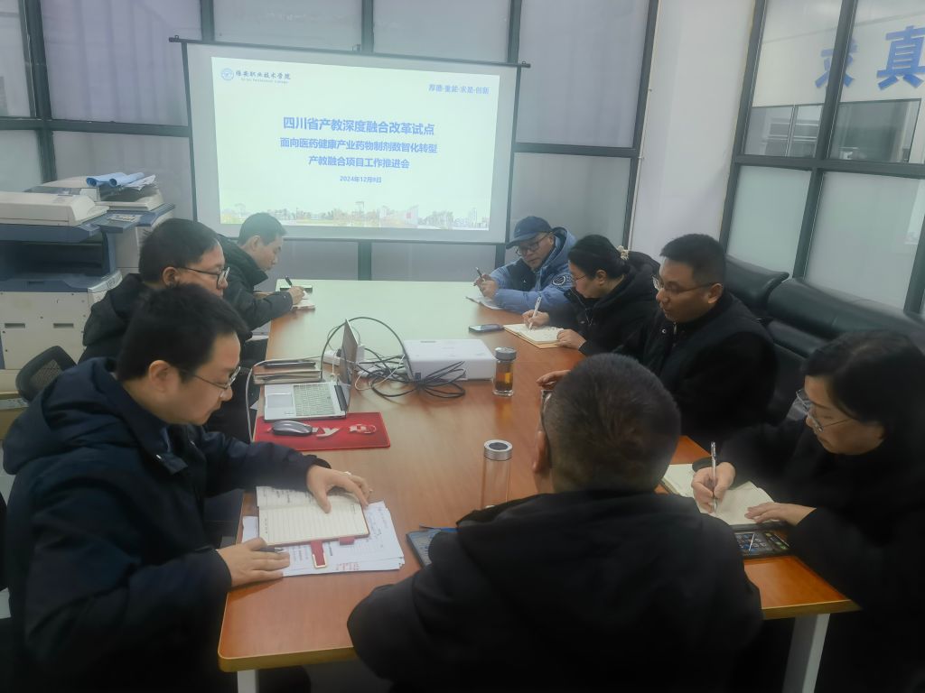 2024年12月10日,四川省产教深度融合改革试点面向医药健康产业药物制剂数智化转型产教融合项目工作推进会在食品药品应用开发工程技术研究中心二楼会议室顺利召开,项目组主要成员参加了会议。本次工作推进会围绕人才培养进行了研讨。