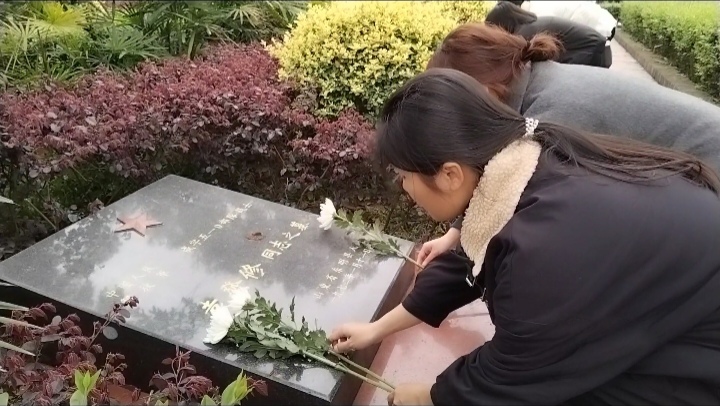 在烈士纪念碑前,主持人组织进行祭扫仪式,全体成员整齐肃立默哀三分钟。全员高举右拳,教师党员面向党旗重温入党誓词,大家铿锵有力的宣誓,展现了作为党员应有的顽强拼搏与奋斗的决心。随后,全体人员依次对烈士碑给予一朵朵鲜花寄托哀思,表达对先烈的深切缅怀。