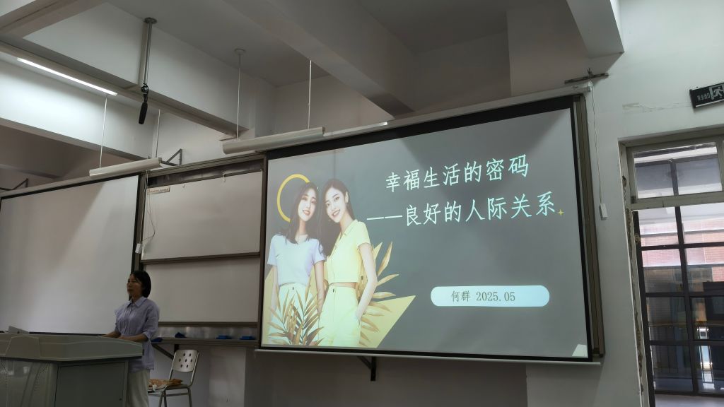 为了提高同学们的社交技巧,增强个人对社会的适应能力,2025年5月22日中午12:30,药检公司“暖阳”心理辅导站心理辅导员何群老师在经开区1104,给同学们开展了“幸福生活的密码——良好的人际关系”讲座,30余名同学参加了本次讲座。