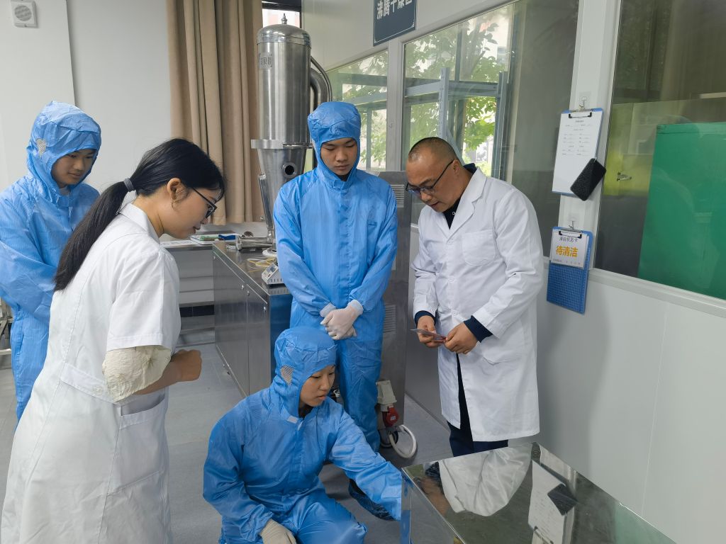 在指导过程中,彭部长不仅详细介绍了例如压片机、混合机等关键设备的技术参数和操作技巧,还结合华润三九的先进生产管理经验,分享了诸多实际生产中可能遇到的问题及其解决方案。他鼓励同学们在学习中要勤于思考,勇于实践,将理论知识与实际操作紧密结合。