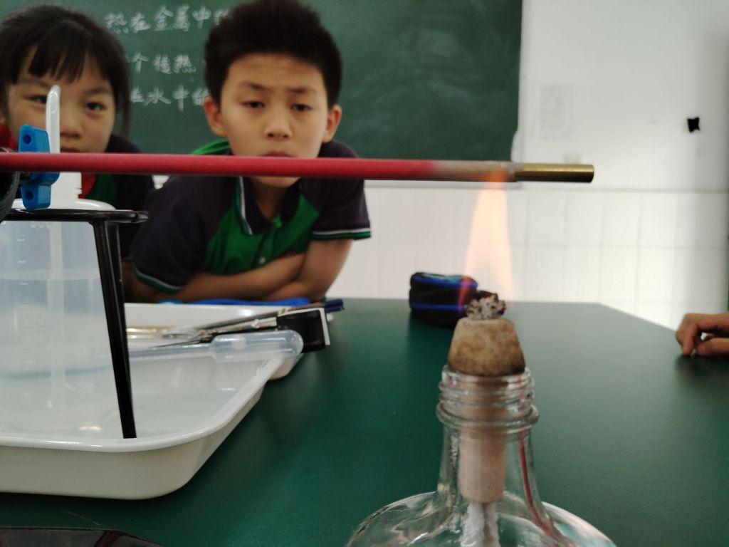 本次科普活动紧跟小学五年级科学课教学进度及时开展“热在金属中的传递”实验、“哪个传热快”和“热在水中的传递”实验。热传导和热对流知识对于小员工来说比较抽象,通过实验教学,将枯燥的物理知识变成可视化的趣味实验。小员工通过实验操作,观察热在金属棒和金属圆片中的传导方式与方向,将知识轻松地记在脑海里;通过实验,观察热在水中的传递过程——热对流,理解并掌握到热对流是怎样的过程。