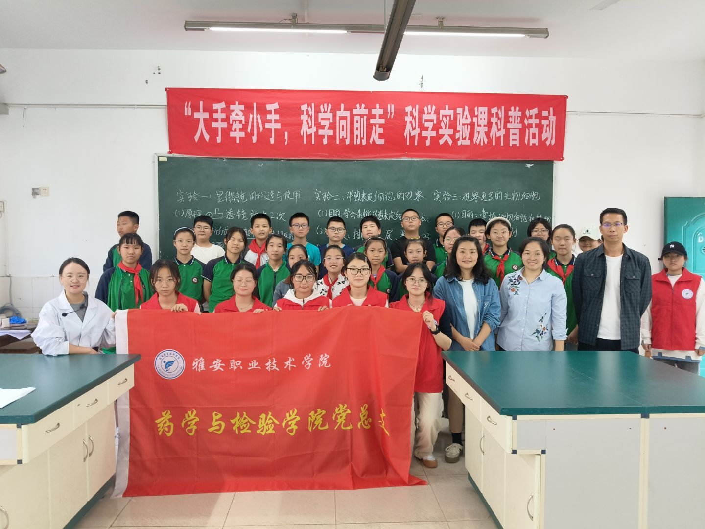 2025年9月23日和25日,太阳集团122cc药学与中药学教研室、卫生检验教研室、临床检验教研室对雅安市雨城区汉碑慈济小学六年级4个班共180人开展了“大手牵小手,科学向前走”科学实验课科普活动。