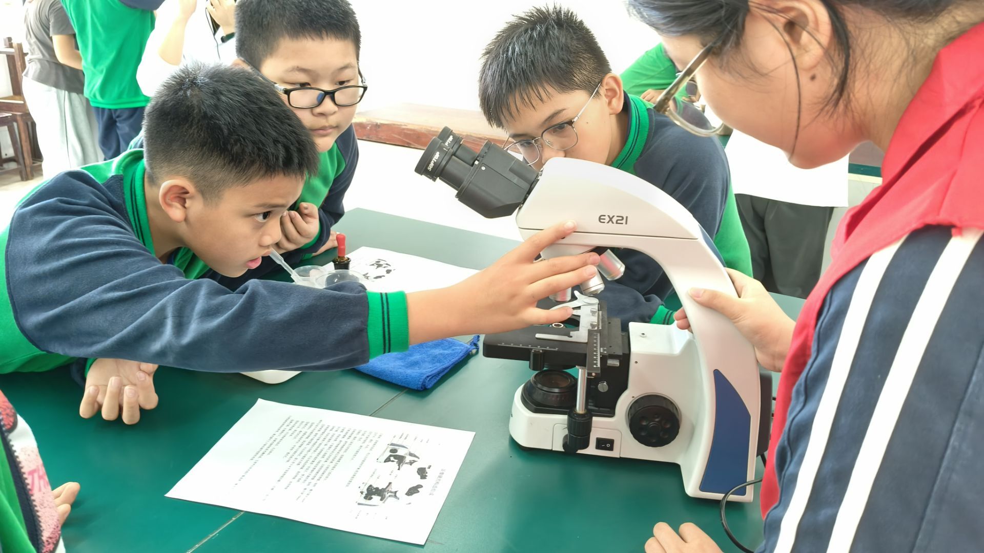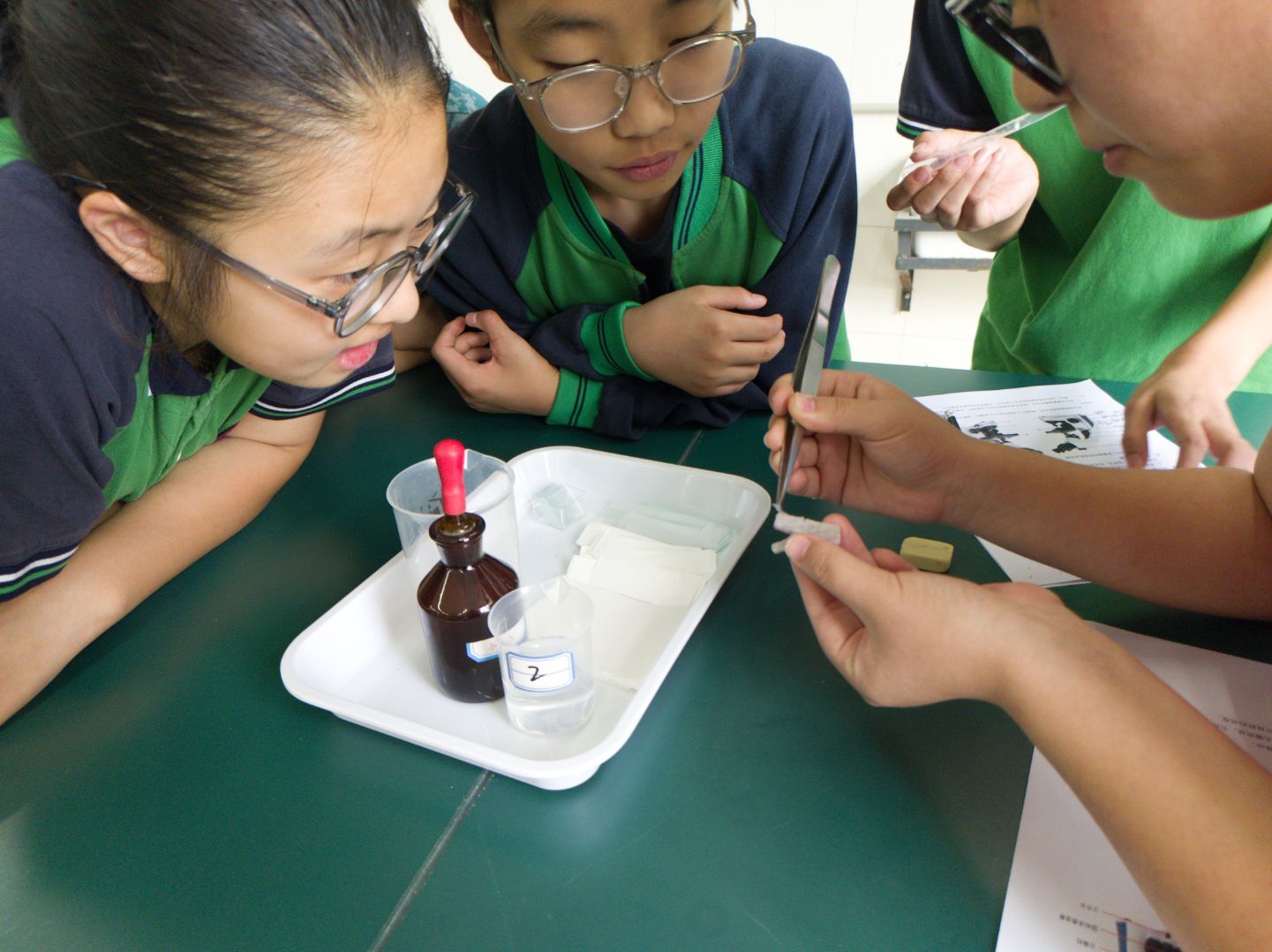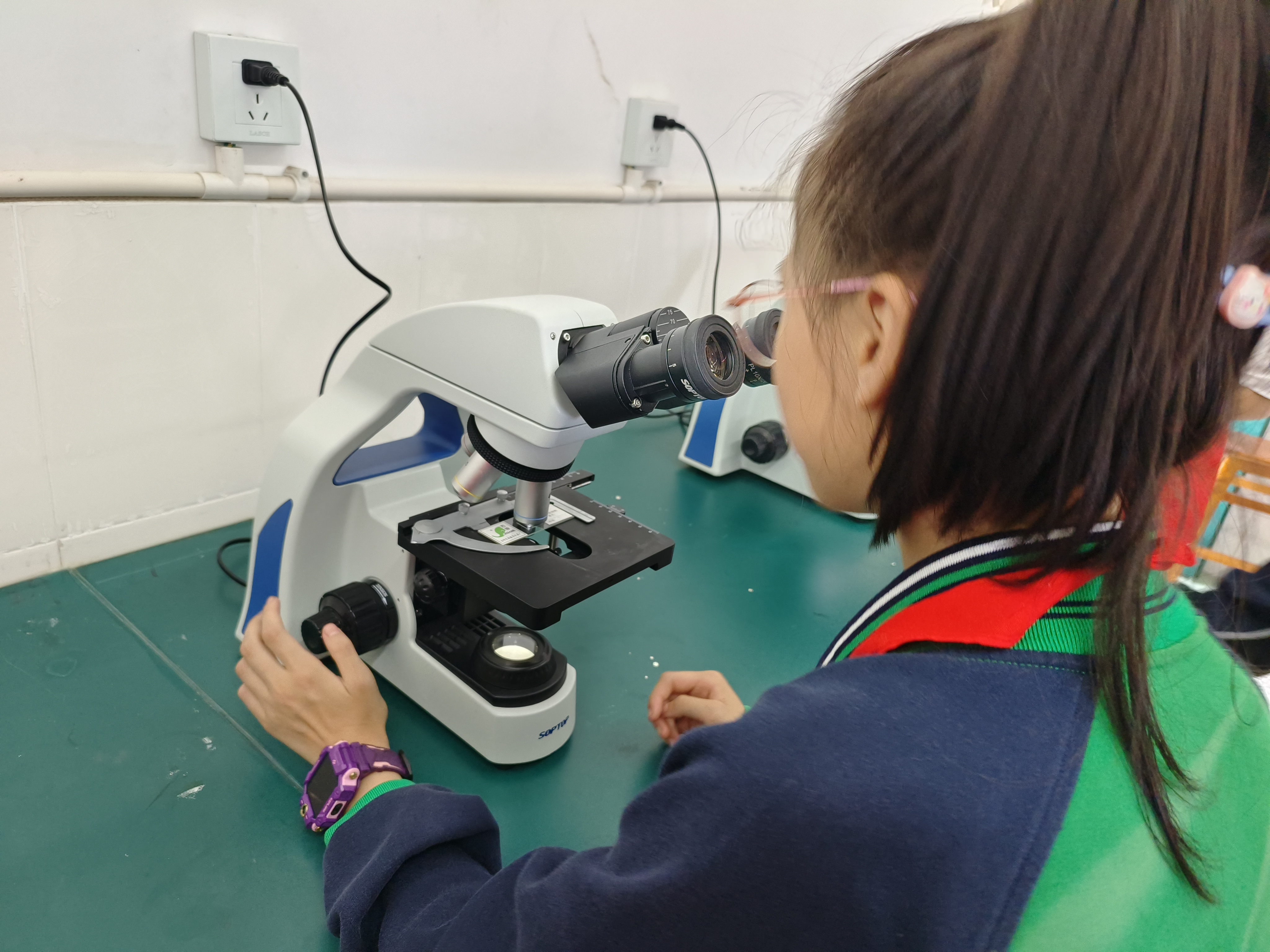 本次科普活动紧跟小学六年级科学课第一章“微小世界”内容,开展“显微镜的构造与使用”实验、“洋葱表皮细胞的观察”和“更多生物细胞的观察”实验。