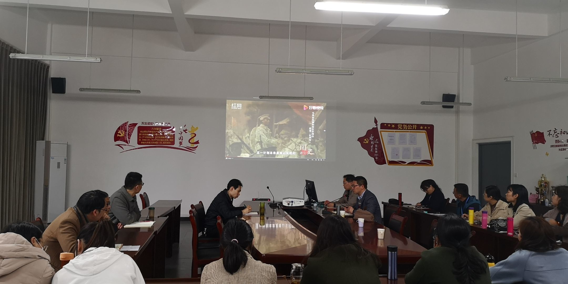 为迎接中国共产党百年华诞,在师生中积极开展党史、新中国史、改革开放史、社会主义发展史的宣传教育。2021年4月20日周二下午2:30,药学与检验公司党总支组织全体师生党员在经开区太阳集团122cc会议室观看党史微课视频《温党史 忆初心 担使命:毛泽东朱德如何在井冈山组建“红四军”》和《为什么说党的十一届三中全会实现了伟大历史转折》。