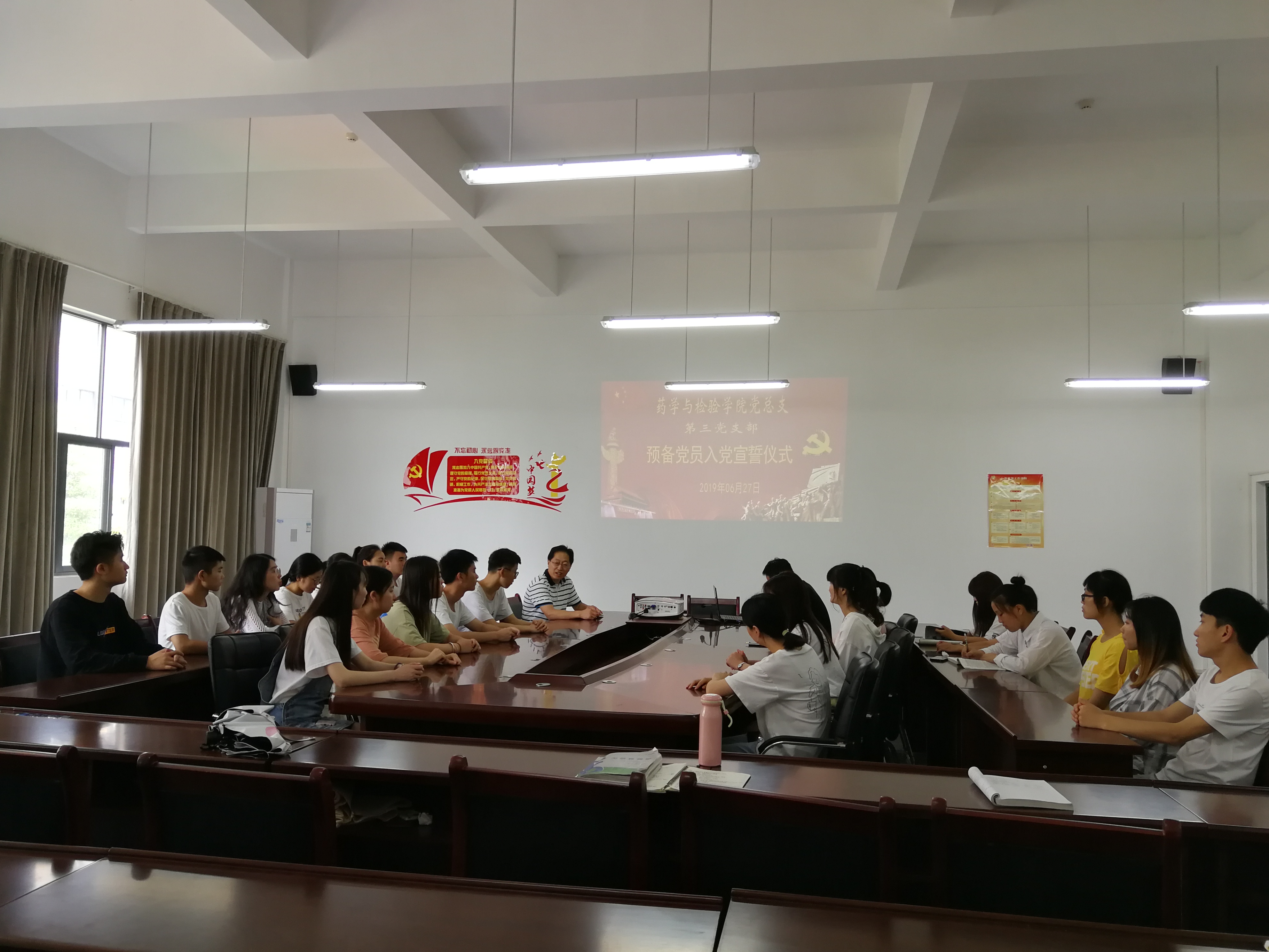 5月30日经过支部大会讨论,6月21日经公司党委审批,药检公司有21名员工加入了预备党员的队伍。活动开始,新的党员从入党动机、在校表现等方面进行了自我介绍,党员同志们表示在今后的学习、工作中再接再厉。接着,杨泽刚书记对新党员提出了三点希望:坚持起模范带头作用,从诚信考试开始;坚持全心全意为人民服务,在实习岗位上发光发热;坚持党员的先进性,工作期间要抓好政治理论学习和实践。最后全体党员整齐列队,杨文君老师领誓,大家举起右拳,庄严宣誓,表达为共产主义奋斗终身的决心。