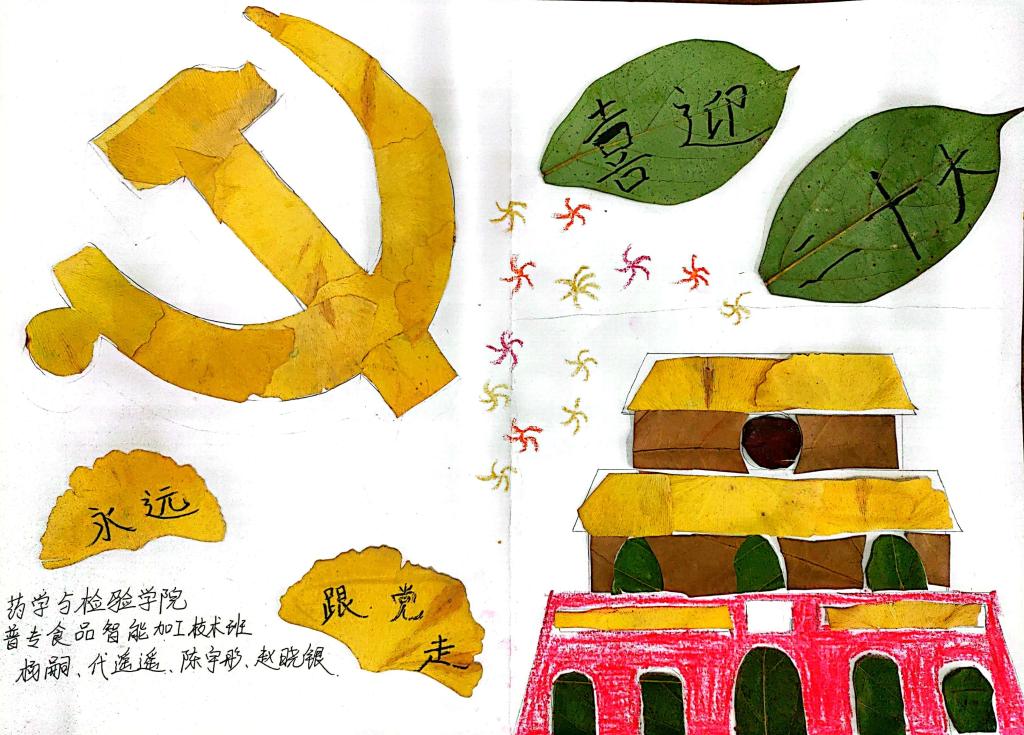 同学们用树叶创作寓意丰富的画作,一方面丰富了课余生活生活,放松了身心,更加快乐的投入学习,体验到自尊、自信、自强、积极向上的心态,进一步提升了积极心理品质。另一方面,通过贴画表达了对党的热爱之情,争做学习“二十大精神”的标兵。