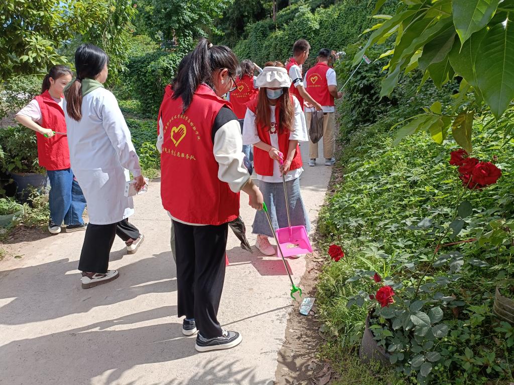 在活动相关负责人的带领下,60名员工志愿者按时抵达目的地。负责人做好明确分工后,志愿者们开始分头进行垃圾清理活动和义诊活动。垃圾清理活动主要是对公共道路和树林中的白色塑料垃圾进行拾取和清扫,志愿者们在道路和树林中仔细检查,认真捡拾垃圾,不一会儿便装了满满两大口袋。义诊活动主要是为社区老人提供血压监测服务,让老年人对自身血压健康情况有更清楚的了解,同时针对社区老人普遍关心的健康问题做了一些解答和科普。