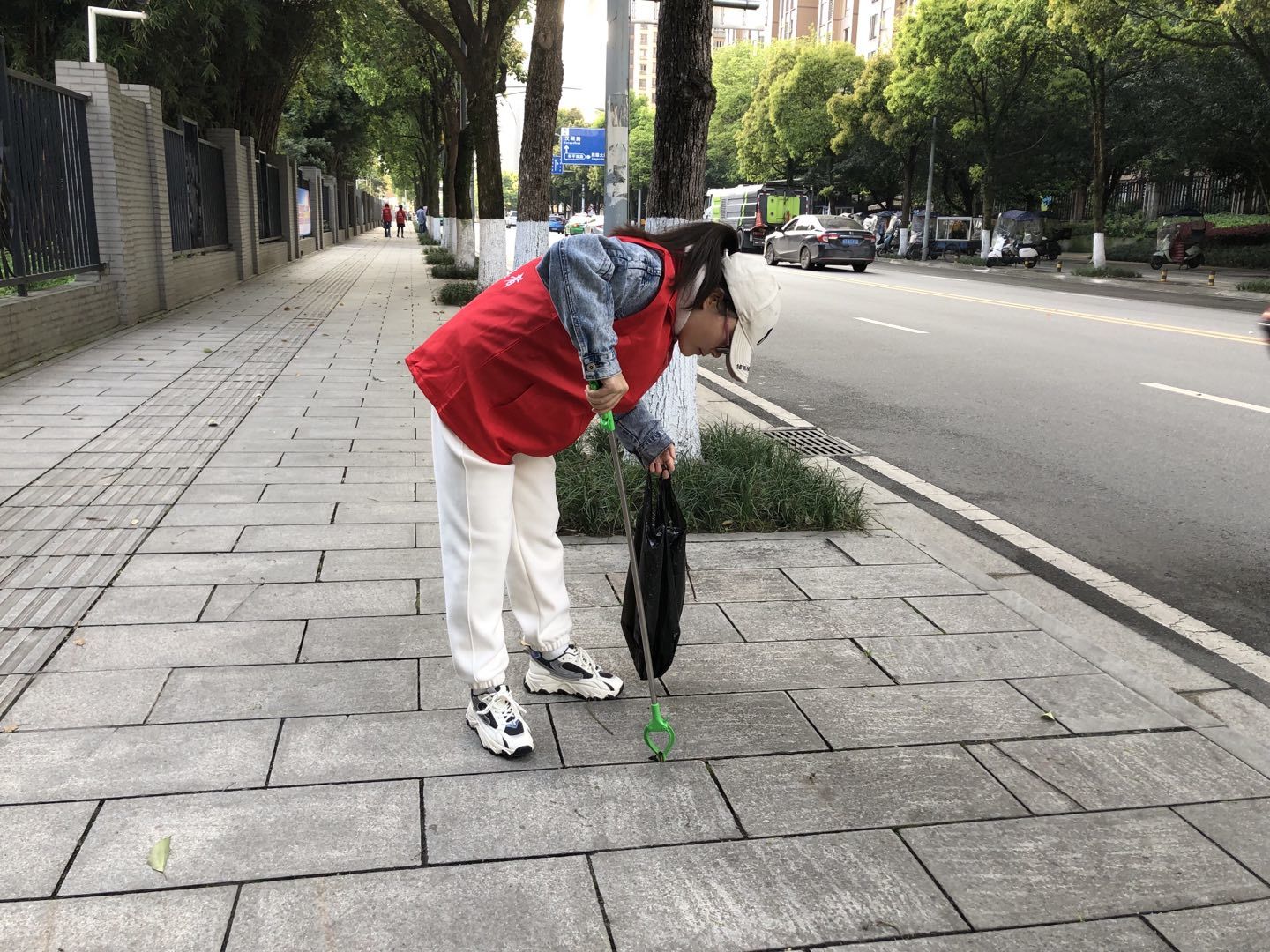 鲜敏老师在3月29日的培训会上为志愿者们讲明了活动的目的、流程以及注意事项。随后杨太香同学便对志愿者进行分组,安排好岗位、站点等细节,并分发好了志愿者服和劳动工具。身穿统一服装的志愿者在3月30日8点准时到岗,带上清洁工具,对公司和街道各个角落进行清扫和维护。通过志愿者们的努力,不仅街道和公司的落叶、白色垃圾、烟头被“一网打尽”,连公司内张贴的宣传单也被清理的干干净净。在志愿者团队的努力下,越来越多的人自觉的将垃圾带到垃圾桶扔掉,街道和公司的地面越来越干净,焕发了新的生机。