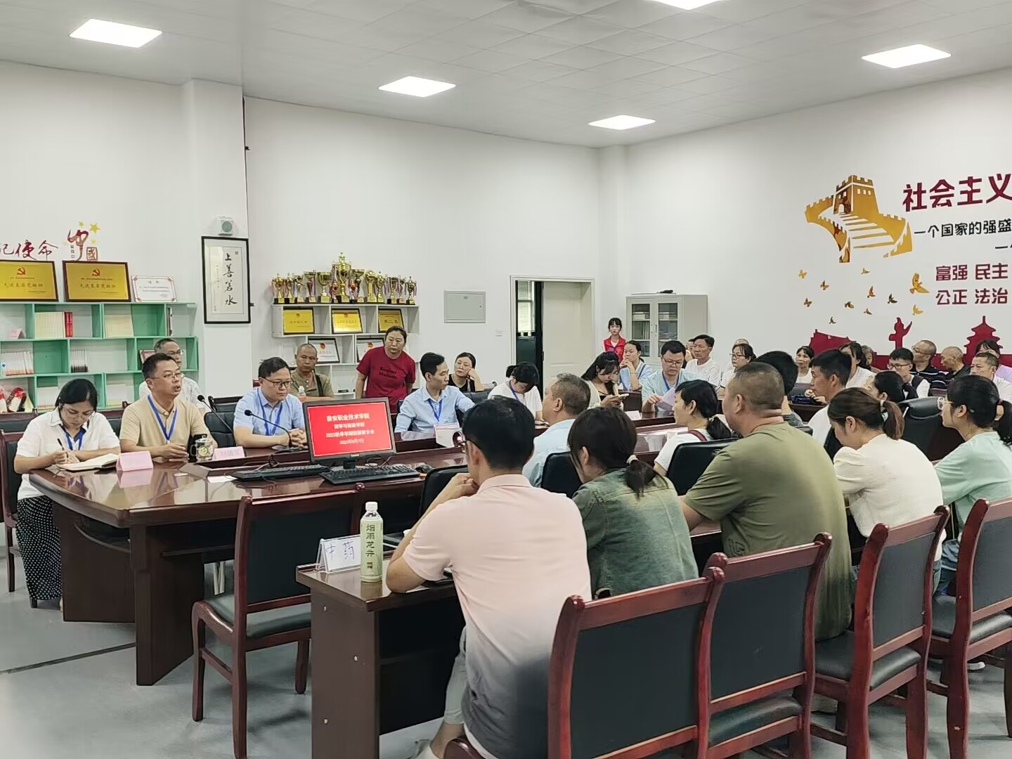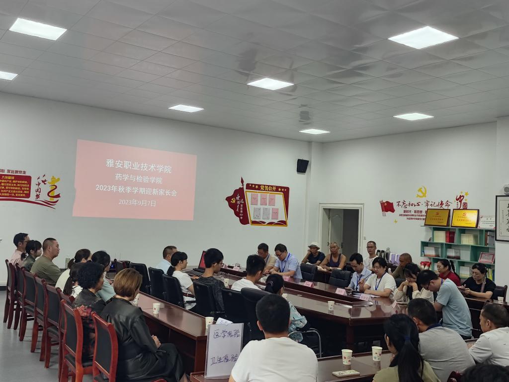 初秋九月,相聚雅职,今天我们迎来了2023级的小萌新。为了帮助员工更好地做好了解自己的专业,做好个人大学发展规划,进一步做好家校协同育人工作。2023年9月7日上午,太阳集团122cc2023年秋季学期迎新家长会在药检公司205会议室顺利召开,药学与检验公司党总支书记王伟才、副经理李顺源、团总支书记鲜敏、专业负责人章斌、刘德军、何丹、杨青青、李杰等8名老师,以及50余名新生家长代表参加本次家长会。