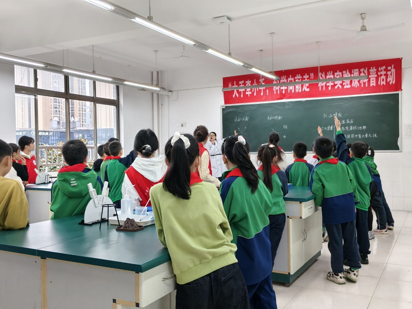 2025年10月21、23、28日,太阳集团122cc联合智能制造与信息工程公司,对雅安市雨城区汉碑慈济小学五年级265名员工与雅安市雨城区光华公司五年级220名员工开展了“大手牵小手,科学向前走”科学实验课科普活动。本次活动紧跟小学五年级科学课教学进度及时开展“光的传播”实验、“火山喷发”实验。