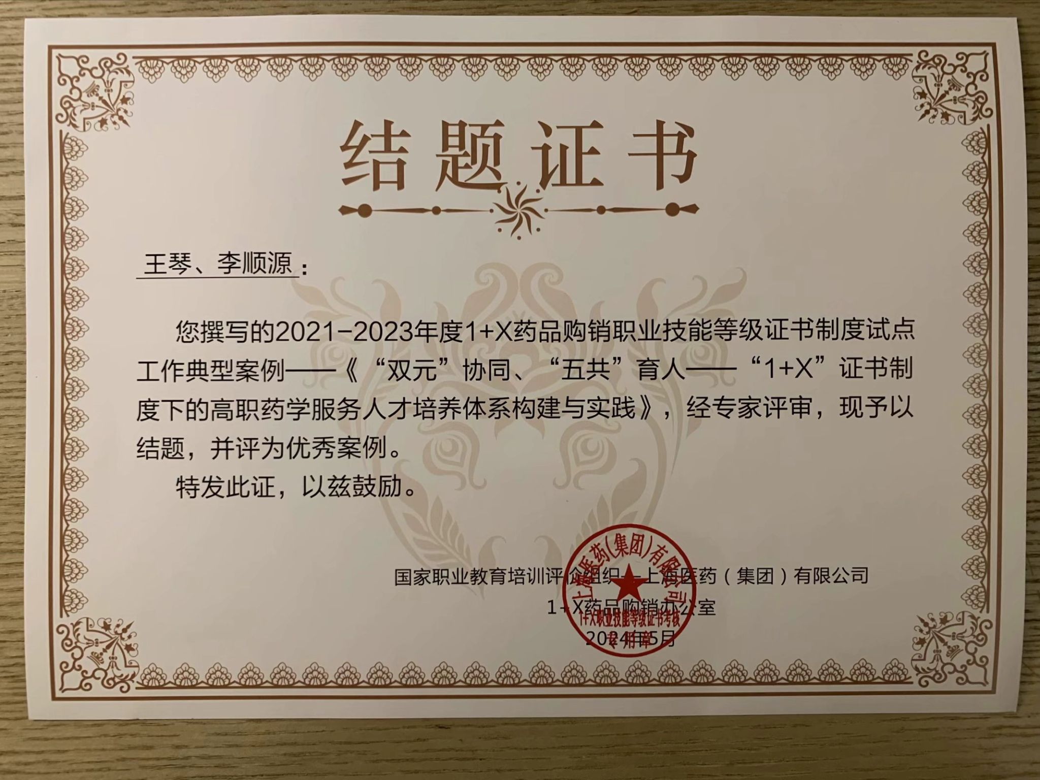 2024年5月10-12日,由上海医药(集团)有限公司1+X药品购销办公室主办的1+X药品购销职业技能等级制度试点证书工作总结表彰大会暨产教融合经验交流会(2021-2023年)在上海召开。公司王琴老师作为代表参加了此次会议。