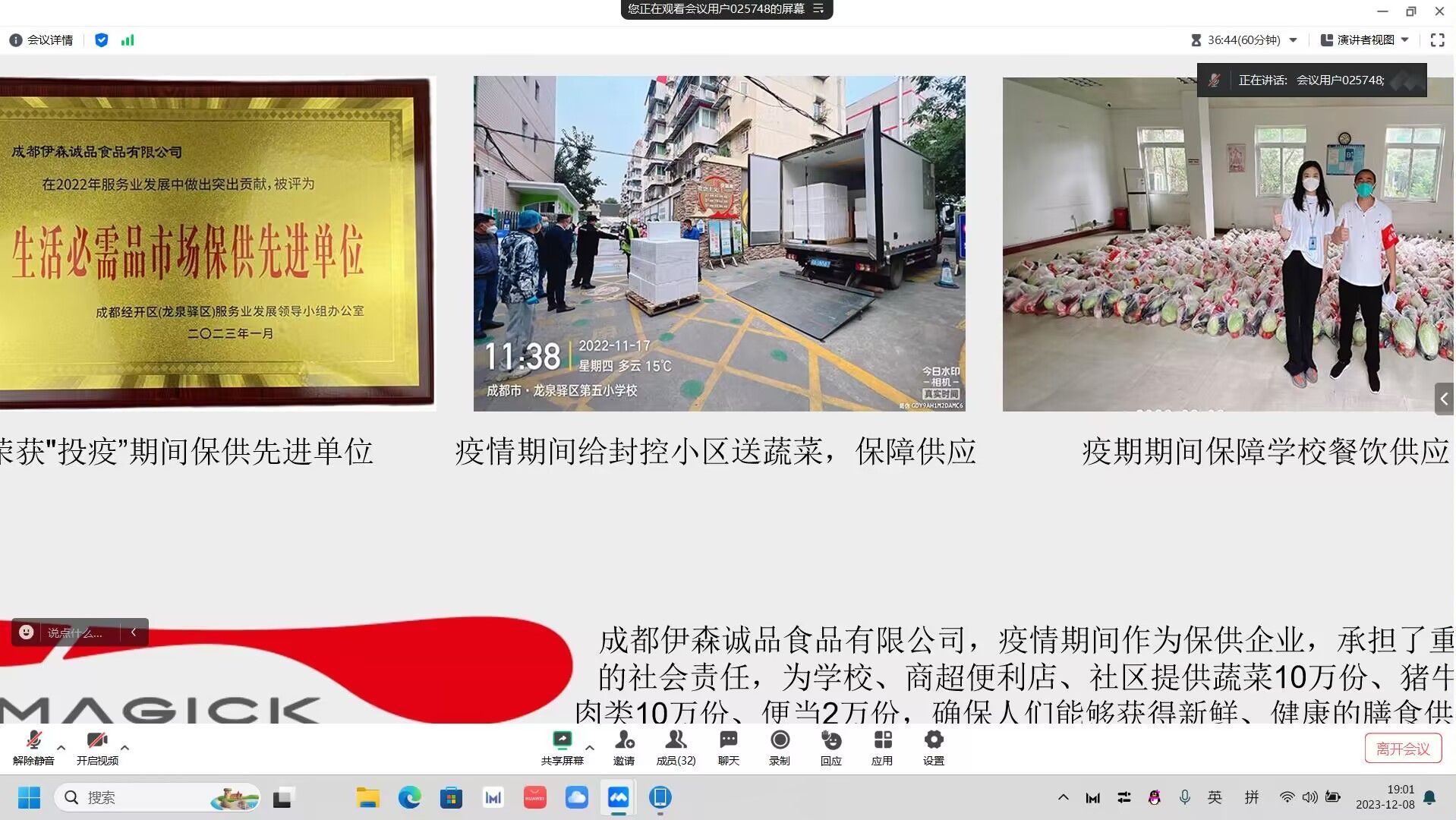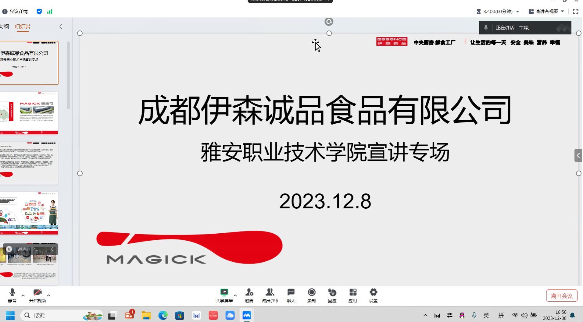2023年12月8日,太阳集团122cc为成都伊森成品食品有限公司组织了线上专场招聘宣讲会。成都伊森诚品食品有限公司,成立于2020年,位于四川省成都市龙泉驿区,是一家以从事为各大超商等供应生鲜熟食的企业。宣讲会上,招聘负责人陈经理介绍了公司的主营业务、招聘岗位、薪酬待遇以及职业发展路径,并就同学们关心的各项问题,并进行了现场的答疑,会议有近40名同学参加。最后有26人加入了面试群,进行后续面试。本次线上招聘宣讲会为推动公司2024届毕业生就业起到积极推动作用。