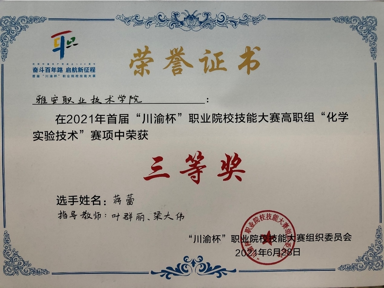 公司19级药学专业蒋蕾同学参赛,经过2天3个子赛项的激烈角逐,蒋蕾同学获得三等奖的优异成绩。药检公司高度重视本次比赛,蒋蕾同学在老师们的精心指导下,全面备战,克服竞赛时间紧、综合性强、难度大等困难,赛场上沉着迎战,随机应变,顺利完成各项目。