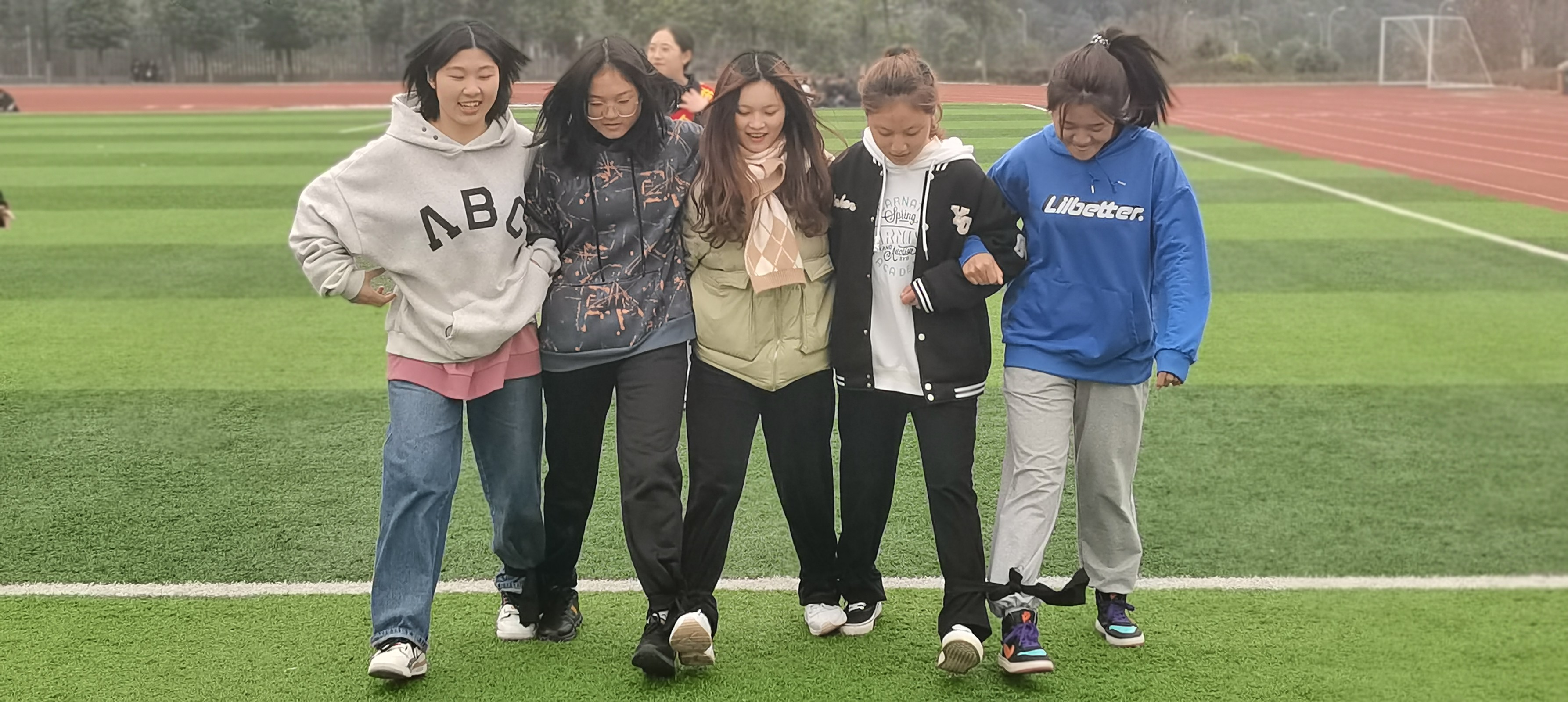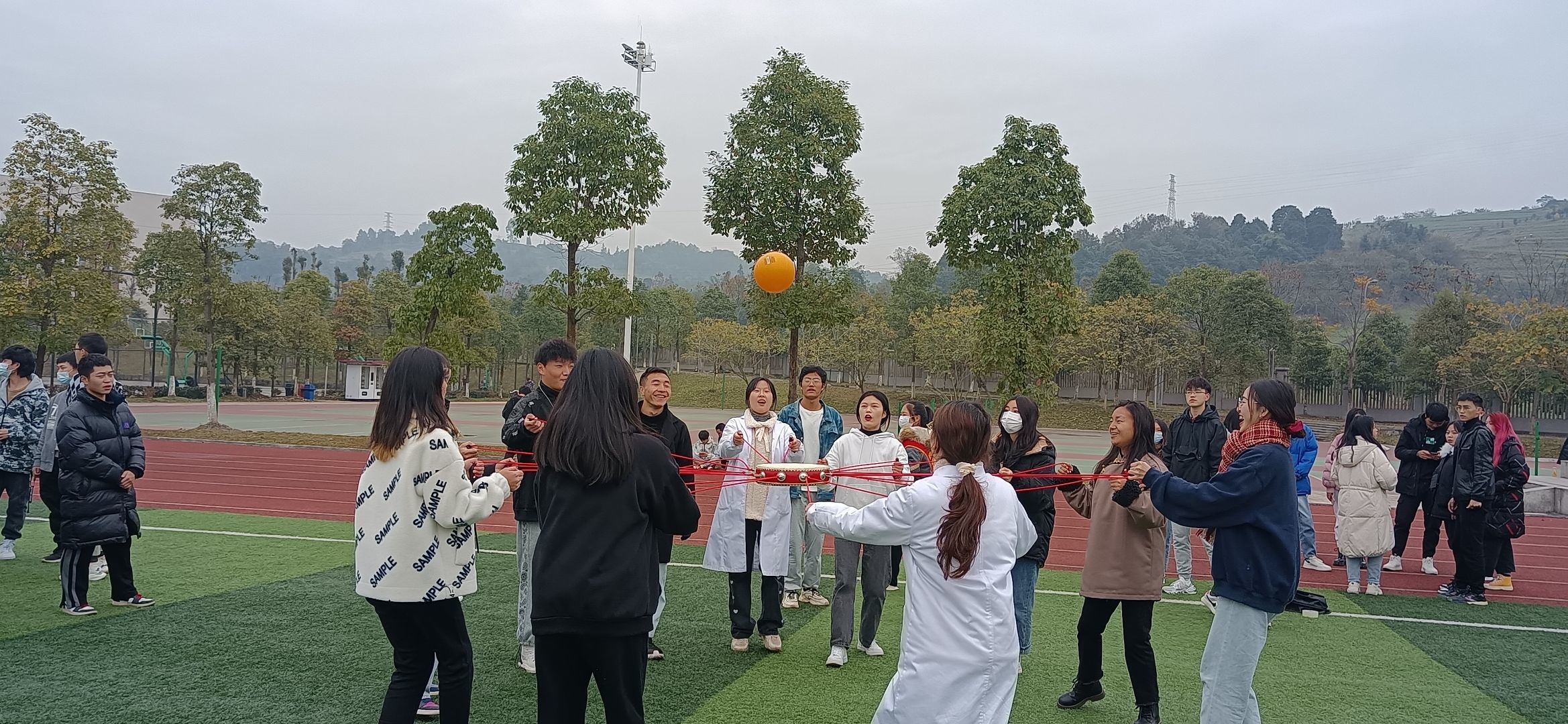 本次运动会共设有“齐心协力过草地”、“翻越夹金山”、“强渡大渡河”、“四渡赤水”、“巧夺金沙江”以及“胜利会师”共计六个具有红色长征韵味的活动,共计37支队伍参赛。随着主持人宣布运动项目的比赛规则和裁判员的一声哨响,趣味运动会正式开始!赛场上,参赛队员们个个精神抖擞,“跳、跑、闪、搂、抱、伸、弹......”十八般武艺尽显,运动员们抱着“争取第一,重在参与”的精神,默契配合,享受着每一项趣味比赛带来的身心放松和愉悦。观战的同学们也热情似火,加油声、呐喊声、欢笑声此起彼伏。经过一下午激烈角逐,比赛项目一、二、三等奖最终各自花落有主。赛后,同学们有序离开并留下了欢声一片,自此趣味运动会落下了圆满的帷幕。