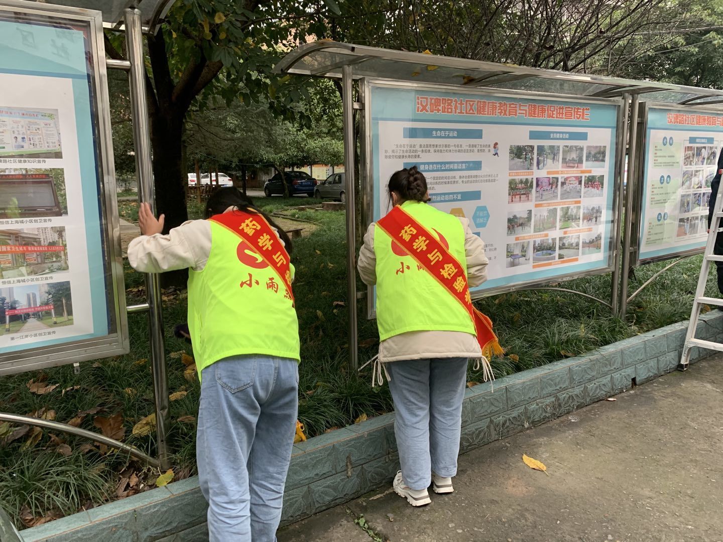 30名志愿者被分为两支队伍:一支20名由邵鹏带队前往雨城区河北街道,对街道的垃圾、杂物等进行了清理,并对河北街道及附近的单车进行了有序摆放;另一支由王靖雯、夏钰银带队前往汉碑社区,帮助社区工作人员打扫卫生、整理文件资料,帮助社区居民清理阳台杂草,并挨家挨户进行文明劝导,提醒居民阳台勿堆放杂物,避免高空掉物,危害公共安全,同时,号召居民爱护环境,共同创建良好的社区环境。社区服务活动完成之后,青年志愿者们在路口“上岗”,协助交警维护交通秩序。