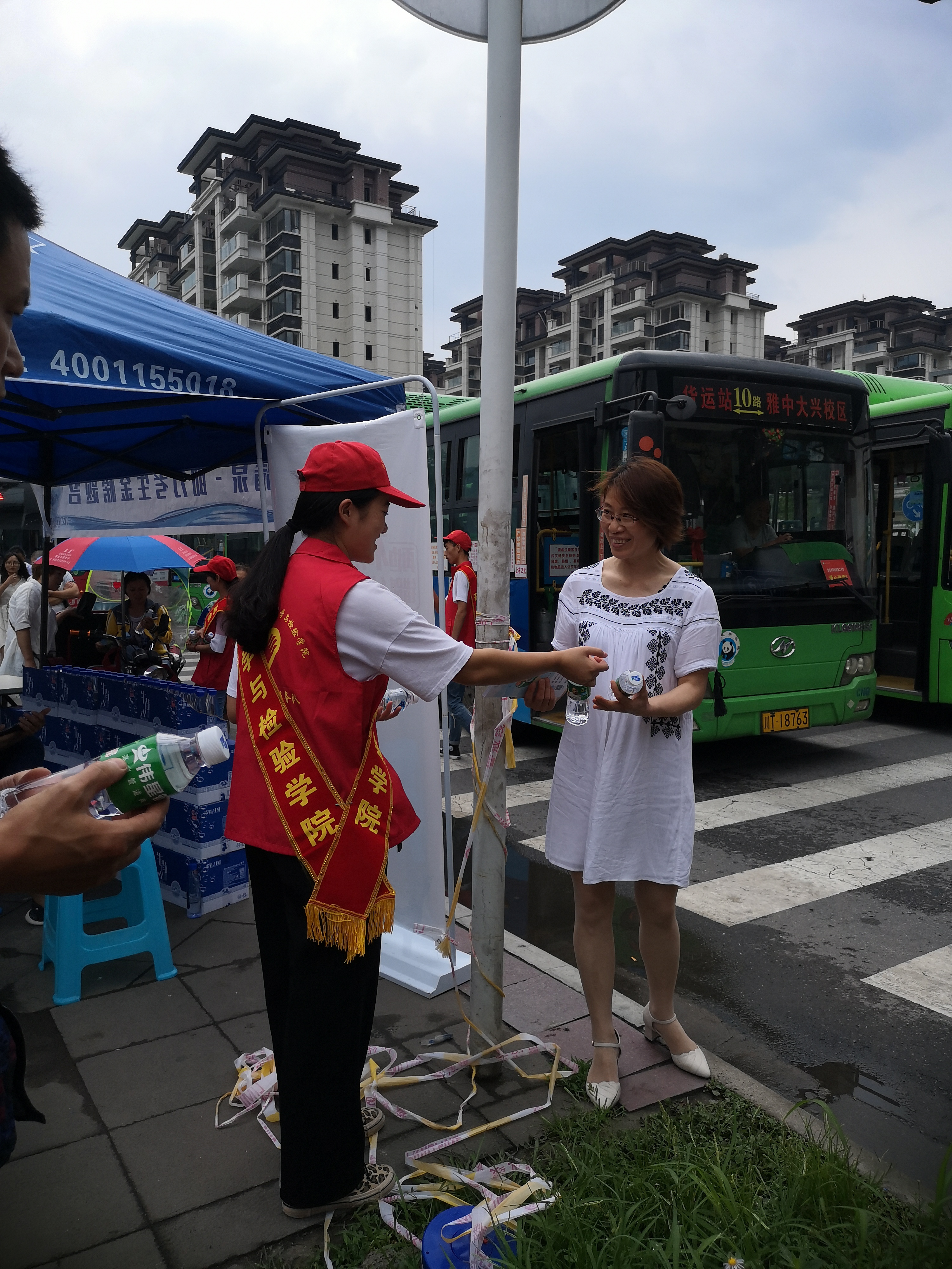 6月6日,10名志愿者参加了由共青团雅安市委、教育局等多单位联合主办《青春护航志愿服务活动启动仪式》。志愿者们积极参与会场布置,充分体现了青年团体对社会服务的热情。6月7日—8日,志愿者们将服务热情化为了实践,大家在雅安中学大兴校区外设志愿服务点,为莘莘学子送上一份力量。考试的时候,志愿者为考场外等候的家长提供矿泉水和扇子,偶尔和家长闲聊几句当年自己的高考,帮家长减轻压力,做好考生的后勤服务工作。考试结束,考生们陆续走出考场,志愿者们赶紧为考生送上水和扇子,为他们加油打气,祝福考生端午高中,金榜题名。两天里,志愿者重复着这样的服务,尽管烈日当空,但是没有一个人有怨言,有的只是满脸的笑容。随着最后一场铃声响起,2019年高考也完美落幕,考生们为青春交上了一份答卷,志愿者们也为自己的信念走出了一大步。