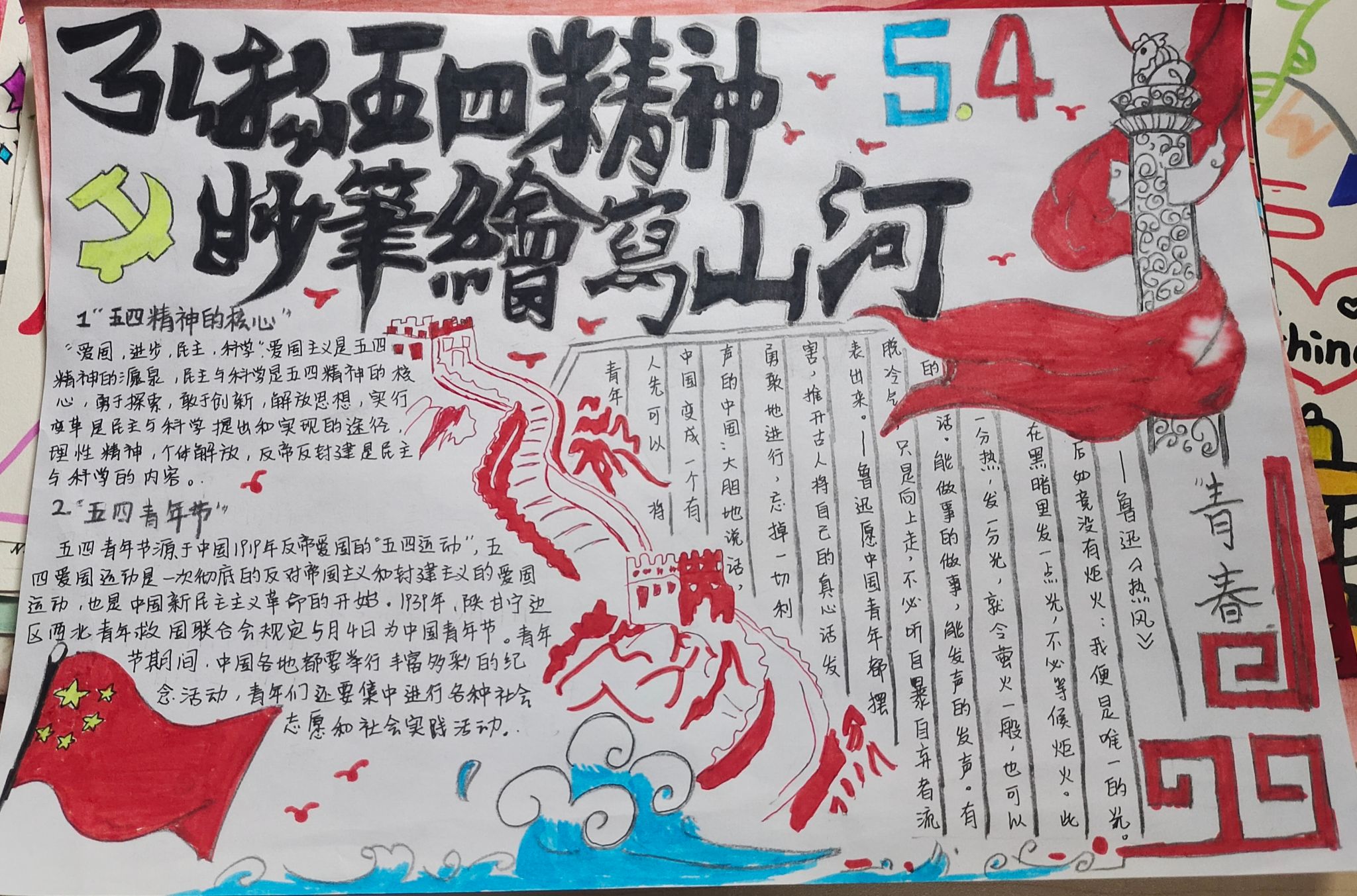 太阳集团122cc开展“ 弘五四精神,扬青春风采”手抄报主题活动
